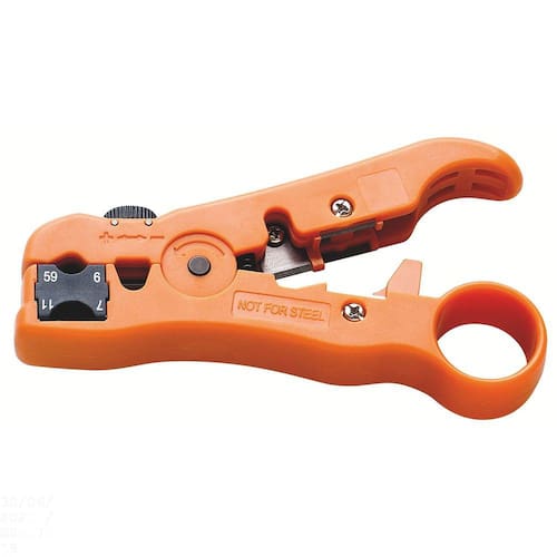 Este alicate permite ajustar o tamanho do fio a ser desencapado padronizando o seu comprimento o que otimiza a operação posterior de crimpagem com terminais normatizados. Possui botão de ajuste que regula a altura de desencape conforme o diâmetro do cabo de rede e possibilita desencapar cabos coaxiais, cabos de rede e cabos de telefonia. Maior resistência, conforto e segurança em suas mãos. Orientações Corpo injetado em ABS. Lâminas em aço inoxidável. Os alicates de corte são testados quanto à resistência ao desgaste do gume de corte em máquina de ensaio específica. Possui batente para controlar e ajustar o tamanho do fio a ser desencapado. Fácil ajuste dos cabos a serem desencapados. O batente possibilita desencapar sempre um mesmo comprimento de fio que otimiza a operação posterior de crimpagem com terminais normatizados. Botão de ajuste que regula a altura de desencape conforme o diâmetro do cabo de rede. Desencapa cabos coaxiais RG59, RG6, RG7 e RG11, cabos de rede e cabos de telefonia. Cassete reversível. Corta fios não metálicos. As ferramentas são produzidas e testadas conforme normas específicas. Características Gerais EAN13 7891114115659 DUN14 17891114115656 NCM 8203.20.10 Peso Líquido 0,1000 kg. Peso Bruto 0,1000 kg. Metragem 0,000516 m³. Dimensões Embalagem (Compr. X Larg. X Alt.) 215x 120x 20 mm. Dimensões Produto (Compr. X Larg. X Alt.) 125x 71x 18 mm. Dimensão Extra A 18,0 mm. Dimensão Extra B 38,0 mm. Dimensão Extra C 71,0 mm. Dimensão Extra D 125,0 mm. Observações Use óculos, luvas e outros equipamentos de proteção individual (EPIs) de acordo com a tarefa a ser executada. Observe as indicações de uso de cada tipo de alicate. Nunca utilize um alicate para cortar arames endurecidos, a não ser que tenha sido projetado para este fim. Nunca utilize o alicate como martelo. Ele pode trincar ou até mesmo quebrar. Nunca exponha os alicates ao calor excessivo. Isto pode alterar o tratamento térmico aplicado no corte e afetar o seu desempenho. Sempre posicione o corte do alicate perpendicularmente ao eixo do arame para uma operação mais rápida e segura. Utilize alicates isolados, identificados pela marcação 1.000 V no cabo, quando for necessário trabalhar em locais com corrente elétrica. Importante: nestes casos, inspecione a integridade da isolação elétrica, e, se aparecerem trincas na isolação, suspenda o uso imediatamente. Nunca aumente o comprimento dos cabos dos alicates. Isto amplifica a força exercida sobre a cabeça da ferramenta podendo quebrá-la. Nunca utilize o alicate em porcas e parafusos. Para estes trabalhos, indica-se o uso de chaves de aperto. Lubrifique periodicamente a articulação. Isto aumenta a vida útil do produto e melhora sua performance. Manter os alicates longe do alcance de crianças. Armazene em local limpo e seco.