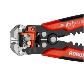 Informações do produto › Acompanha 2 molas extras para reposição; › Crimpa terminais com e sem isolamento de 10 a 22 AWG (0,5 à 6,0 mm²); › Possui batente para padronização do tamanho de fio a ser desencapado; › Desencapa 7 diferentes bitolas de fios 0,2 a 6 mm², sem danificar o cobre; › Parafuso de ajuste de pressão para regulagem de força necessária para desencape; › Empunhadura ergonômica, permitindo a realização do trabalho com conforto e segurança;