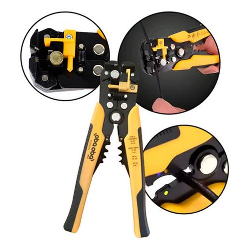 Apresentamos o Alicate Desencapador de Fios e Crimpador Eletricista, uma ferramenta essencial para profissionais da eletricidade e telefonia. Com seu design ergonômico e cabos de dupla injeção, este alicate garante conforto e durabilidade durante o uso prolongado. Seu corpo em aço carbono temperado e fosfatado oferece resistência superior, enquanto o revestimento em borracha proporciona uma pegada firme. O batente ajustador de comprimento permite que você desencape fios sempre no tamanho desejado, otimizando a operação de crimpagem com terminais normalizados. Com a capacidade de desencapar e cortar fios de 0,2 a 6 mm² e crimpar terminais de 10 a 22 AWG, esse alicate é ideal para uso industrial e automotivo, tudo produzido e testado conforme normas específicas para garantir a máxima eficiência e segurança. Este alicate é a escolha perfeita para quem busca precisão e qualidade em seus trabalhos elétricos.