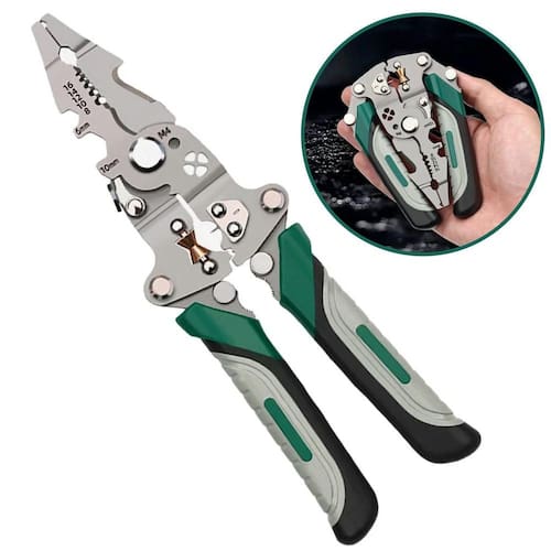 Alicate eletricista multiuso dobrável cortador descascador de fios Alicate eletricista 3 em 1 - corte, descasque e crimpe com precisão O que é este alicate Este alicate eletricista 3 em 1 é a ferramenta ideal para quem busca velocidade, segurança e qualidade no trabalho. Com função de corte, descasque e crimpagem, ele substitui várias ferramentas em um único equipamento compacto e resistente. Fabricado em aço de alta qualidade e com cabo ergonômico, garante conforto e firmeza mesmo em uso prolongado. Vantagens exclusivas - 3 funções em uma só ferramenta - corte preciso, descasque rápido e crimpagem firme. - reduz o tempo de serviço - mais agilidade em instalações e manutenções elétricas. - cabo ergonômico antiderrapante - mais conforto e segurança. - materiais premium - lâminas de aço carbono com tratamento anticorrosão. - multiuso - ideal para eletricistas, hobbystas, instaladores e manutenção industrial. Como usar - para cortar fios: posicione o fio na área de corte e pressione suavemente até o corte completo. - para descascar: utilize o medidor integrado para selecionar a espessura e gire levemente para remover o isolamento. - para crimpar: coloque o terminal na área de crimpagem e pressione até fixar com segurança. 1. Serve para quais tipos de fios Funciona em fios de cobre e alumínio de diversas espessuras, inclusive cabos elétricos residenciais e industriais. 2. O cabo é confortável para uso prolongado Sim o cabo possui revestimento ergonômico e antiderrapante, evitando fadiga nas mãos. 3. Posso usar para crimpar terminais isolados Sim, ele é projetado para crimpagem de terminais isolados e não isolados. 4. É indicado para Sim ferramenta robusta, durável e precisa, ideal para eletricistas e técnicos. 5. Precisa de manutenção especial Basta manter limpo e lubrificar as articulações ocasionalmente para prolongar a vida útil. Marca: Não Informado Ean: 7734625971232