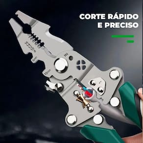 Alicate eletricista multiuso dobrável cortador descascador de fios Alicate eletricista 3 em 1 - corte, descasque e crimpe com precisão O que é este alicate Este alicate eletricista 3 em 1 é a ferramenta ideal para quem busca velocidade, segurança e qualidade no trabalho. Com função de corte, descasque e crimpagem, ele substitui várias ferramentas em um único equipamento compacto e resistente. Fabricado em aço de alta qualidade e com cabo ergonômico, garante conforto e firmeza mesmo em uso prolongado. Vantagens exclusivas - 3 funções em uma só ferramenta - corte preciso, descasque rápido e crimpagem firme. - reduz o tempo de serviço - mais agilidade em instalações e manutenções elétricas. - cabo ergonômico antiderrapante - mais conforto e segurança. - materiais premium - lâminas de aço carbono com tratamento anticorrosão. - multiuso - ideal para eletricistas, hobbystas, instaladores e manutenção industrial. Como usar - para cortar fios: posicione o fio na área de corte e pressione suavemente até o corte completo. - para descascar: utilize o medidor integrado para selecionar a espessura e gire levemente para remover o isolamento. - para crimpar: coloque o terminal na área de crimpagem e pressione até fixar com segurança. 1. Serve para quais tipos de fios Funciona em fios de cobre e alumínio de diversas espessuras, inclusive cabos elétricos residenciais e industriais. 2. O cabo é confortável para uso prolongado Sim o cabo possui revestimento ergonômico e antiderrapante, evitando fadiga nas mãos. 3. Posso usar para crimpar terminais isolados Sim, ele é projetado para crimpagem de terminais isolados e não isolados. 4. É indicado para Sim ferramenta robusta, durável e precisa, ideal para eletricistas e técnicos. 5. Precisa de manutenção especial Basta manter limpo e lubrificar as articulações ocasionalmente para prolongar a vida útil.