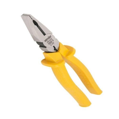 Alicate Eletricista Universal 8 Polegadas 1000V Vonder Indicado para segurar peças planas e cilíndricas, cortar e desencapar fios Produzido em aço cromo vanádio, proporcionando maior resistência e durabilidade. Possui cabo isolado anatômico e antiderrapante, com abas de proteção, que oferece maior conforto e segurança ao operador. Isolado a 1.000 V. Comprimento total do alicate:8'' - 203 mm Material do corpo do alicate:Aço cromo vanádio Acabamento do alicate:Polido Tipo do cabo do alicate.:cabo isolado 1000 V - E Cdc : legal: 90 dias Marca: Não Informado