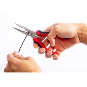 Alicate elétrico de ponta longa Gardner Bender GS-385, cortador e prensador, fio sólido e trançado, 14-16 AWG, ferramenta manual, 6½ pol., vermelho