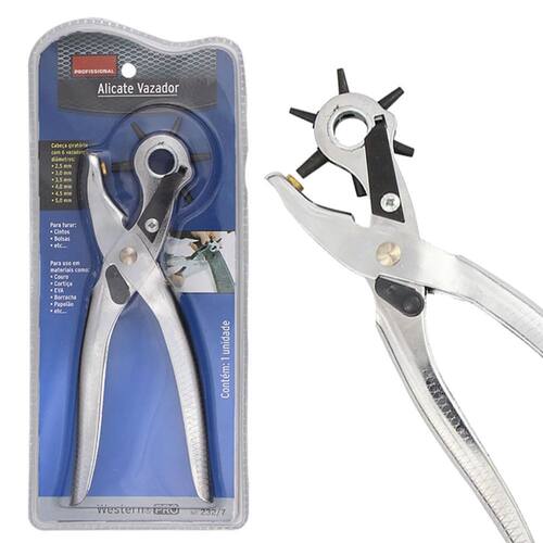 Com o Alicate Vazador Com Cabeça Giratória da Western, você poderá fazer furos em cintos, bolsas e diversos outros materiais, de forma rápida e precisa. Não perca a oportunidade de adquirir um produto de alta qualidade, que facilitará o seu dia a dia.