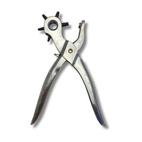 - ALICATE FURA CINTOS VAZADOR - Comprimento do Alicate: 200mm - Material: Aço carbono - Quantidade de pinos: 6 - Tamanho das furações: 2,5mm/ 3,0mm/ 3,5mm/ 4,0mm/ 4,5mm/ 5,0mm - Diferencial do produto: Robusto