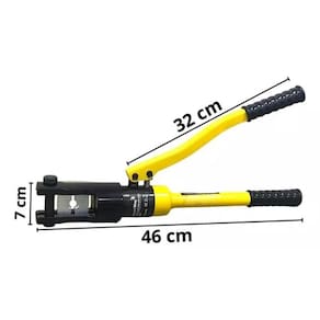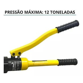 Com 480 mm de largura, o alicate possui uma pressão máxima de 12 toneladas, garantindo uma crimpagem precisa e eficiente. Seu molde de prensagem é hexagonal, proporcionando maior segurança e qualidade nos terminais.
