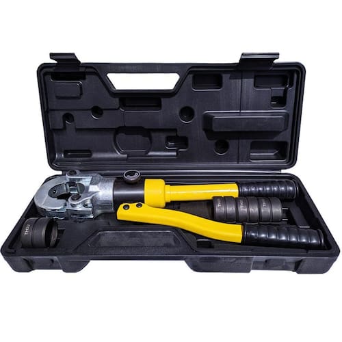 O alicate Hidráulico Prensa Tubos Pex Charbs possui matrizes de 16, 20, 26 e 32 milímetros, ele fornece agilidade e segurança ao serviço proporcionando um acabamento de ótima qualidade.