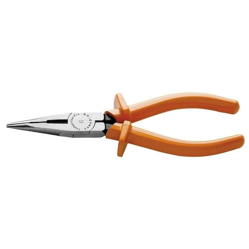 Forjado em aço cromo vanádio. Cabeça e articulação polidas. Têmpera total no corpo. Têmpera por indução no gume de corte.Isolação elétrica de 1.000 V CA. Produto em conformidade com a NBR9699 e NR10.DIN ISO 5745.Os alicates de corte são testados quanto à resistência ao desgaste do gume de corte em máquina de ensaio específica.Os alicates possuem dureza diferenciada no gume de corte e no corpo.Os alicates também são testados com relação à aderência das empunhaduras de PVC.Um ensaio de extrema importância analisa o grau de isolação do revestimento aplicado sobre os cabos dos alicates isolados, e que promove segurança na sua utilização em locais com tensões de até 1.000 V CA.Cortar, prender e dobrar cabos e arames.Utilizado em trabalhos de telefonia.As ferramentas são produzidas e testadas conforme normas específicas.