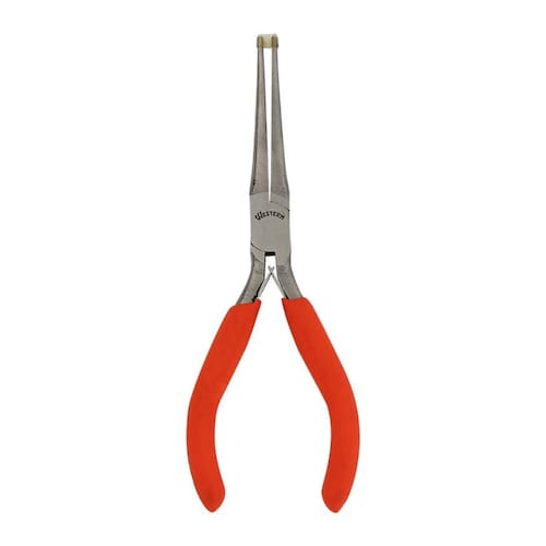 Alicate miniatura com bico meia cana longo.