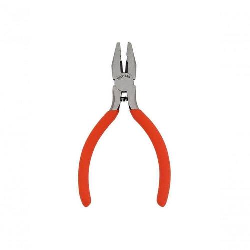 Descricao Um alicate de corte ideal para bijuterias, artesanato, reparos em aparelhos eletronicos, jardinagem e pescaria, entre outros. Forjado em aco carbono. Oferecemos alicates de qualidade que nao podem com toda certeza faltar no seu jogo! Caracteristicas: Alicate miniatura com mola; Cabo emborrachado antideslizante, para melhor estabilidade do usuario. - Antes do uso: Verificar se o produto esta em perfeitas condicoes de uso. - Perigos: Cuidado durante o manuseio do produto para evitar acidentes. - Cuidados: Nao utilize em aparelhos energizados. Ferramenta nao isolada; Utilize equipamento de protecao individual necessario ao trabalho (Oculos de protecao, botas etc.). - Advertencia/Atencao: Manter fora do alcance das criancas. - Indicacao: Indicado para ajuste ou corte de precisao; Para trabalhos de precisao como: bijuterias, artesanato, reparos em aparelhos eletronicos, jardinagem e pescaria. *Imagens meramente ilustrativas. Especificacao Tecnica - Dimensoes da Peca: 4,6 x 0,8 x 11,4cm (CxLxA) - Dimensoes da Embalagem: 7,5 x 1,3 x 18cm (CxLxA) - Tipo de Embalagem: Blister - Quantidade Inner: 30 Pecas - Dimensoes Inner : 22,5 x 20 x 12,5cm (CxLxA) - Quantidade Master: 120 Pecas - Dimensoes Master: 40 x 24 x 26,5cm (CxLxA) - Material: Aco Carbono e PVC (Policloreto de Vinil) - Cor: Prata e Laranja - Marca: Western - Origem: China - Contem: 1 unidade