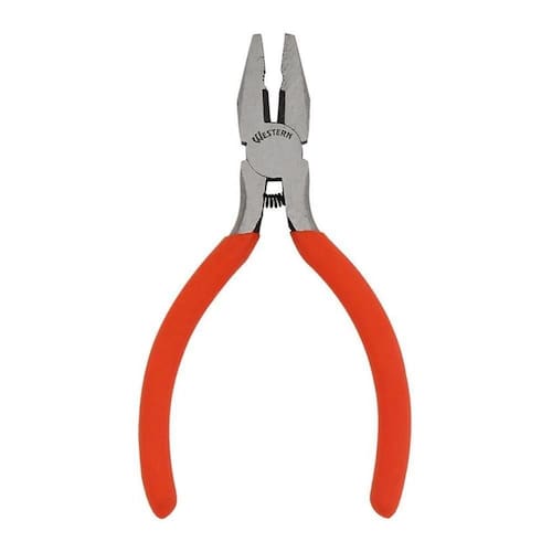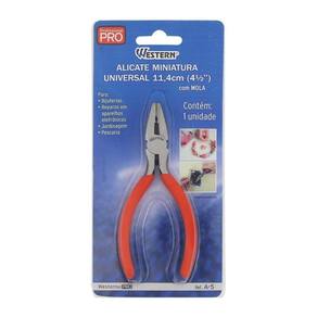 Descricao Um alicate de corte ideal para bijuterias, artesanato, reparos em aparelhos eletronicos, jardinagem e pescaria, entre outros. Forjado em aco carbono. Oferecemos alicates de qualidade que nao podem com toda certeza faltar no seu jogo! Caracteristicas: Alicate miniatura com mola; Cabo emborrachado antideslizante, para melhor estabilidade do usuario. - Antes do uso: Verificar se o produto esta em perfeitas condicoes de uso. - Perigos: Cuidado durante o manuseio do produto para evitar acidentes. - Cuidados: Nao utilize em aparelhos energizados. Ferramenta nao isolada; Utilize equipamento de protecao individual necessario ao trabalho (Oculos de protecao, botas etc.). - Advertencia/Atencao: Manter fora do alcance das criancas. - Indicacao: Indicado para ajuste ou corte de precisao; Para trabalhos de precisao como: bijuterias, artesanato, reparos em aparelhos eletronicos, jardinagem e pescaria. *Imagens meramente ilustrativas. Especificacao Tecnica - Dimensoes da Peca: 4,6 x 0,8 x 11,4cm (CxLxA) - Dimensoes da Embalagem: 7,5 x 1,3 x 18cm (CxLxA) - Tipo de Embalagem: Blister - Quantidade Inner: 30 Pecas - Dimensoes Inner : 22,5 x 20 x 12,5cm (CxLxA) - Quantidade Master: 120 Pecas - Dimensoes Master: 40 x 24 x 26,5cm (CxLxA) - Material: Aco Carbono e PVC (Policloreto de Vinil) - Cor: Prata e Laranja - Marca: Western - Origem: China - Contem: 1 unidade