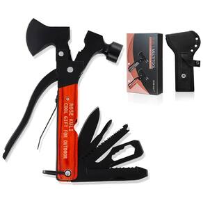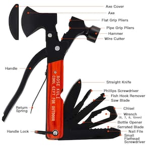 Kit multiferramenta compacto 18 em 1 incluindo martelo, machado, faca, alicate, serra, chaves sextavadas, abridor de garrafas, chave de fenda Phillips, lima, descalcificador de peixe, cortador, descascador e muito mais com trava de segurança, perfeito pronto para qualquer coisa