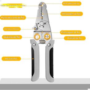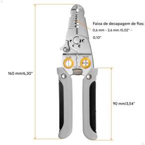 Além de decapar, ele também corta, prensa terminais, enrola e separa fios, tudo com uma mola de retorno automática que reduz o esforço durante o uso.