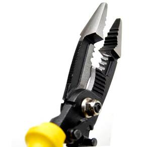 Descrição: O Alicate Multifuncional de 8 Polegadas é a ferramenta indispensável para quem busca eficiência e praticidade em diversas tarefas. Projetado para oferecer máxima durabilidade e desempenho, é ideal para cortes, torções e ajustes em fios, arames e peças metálicas. Sua construção robusta em aço carbono e o design ergonômico garantem conforto, segurança e precisão no manuseio, mesmo em uso prolongado. Essencial para eletricistas, mecânicos, profissionais da construção civil ou para reparos domésticos. Informações Técnicas: