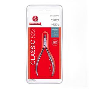Alicate mundial 522 seu segredo para unhas perfeitas revelado Contém: 01 - alicate para cutículas classic 522 mundial 01 - protetor de ponta Alicate para cutículas classic 522 mundial - o mais vendido do mundo A arte de remover cutículas, a cutilagem, é tão necessária quanto a finalização das unhas com a esmaltação. A retirada do excesso de pele, tem o objetivo de deixar as unhas limpas, delicadas e impecáveis. O alicate para cutículas classic 522 mundial, é ferramenta indispensável nesse processo. Suas lâminas já são afiadas e garantem corte preciso de alta durabilidade. Possui mola resistente com de atrito responsável pelo conforto durante a utilização. Seu cabo texturizado não desliza, oferecendo mais segurança ao manuseio. Produzido em aço carbono niquelado, esterilizável em estufa. Embalado em blister. Características: - lâminas afiadas; - corte preciso e alta durabilidade; - mola resistente com de atrito; - cabo texturizado: não desliza e oferece mais segurança ao manuseio; - aço carbono niquelado; - embalagem: blister. Instruções de uso: amolecer a cutícula em água ou emoliente. Com o auxílio do alicate mundial classic, retire a cutícula acompanhando o formato das unhas. Cuidado para não remover pele em excesso. Para melhor conservação de seu alicate evite quedas, mantenha-o seco, limpo e lubrificado. Esterilizável em estufa. Não esterilizável em autoclave. Composição: aço carbono niquelado. Marca: Não Informado