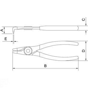 Colocar e retirar anéis de equipamentos fica mais fácil com o alicate de anéis da Tramontina PRO. Maior resistência, conforto e segurança em suas mãos. Orientações Bico curvo. Forjado em aço cromo vanádio. Acabamento fosfatizado.Têmpera total no corpo. Cabos com revestimento especial.DIN 5256.Os alicates de corte são testados quanto à resistência ao desgaste do gume de corte em máquina de ensaio específica.Os alicates possuem dureza diferenciada no gume de corte e no corpo.Os alicates também são testados com relação à aderência das empunhaduras de PVC.Um ensaio de extrema importância analisa o grau de isolação do revestimento aplicado sobre os cabos dos alicates isolados, e que promove segurança na sua utilização em locais com tensões de até 1.000 V CA.Puxar, prender, enrolar, deformar e cortar arames e chapas finas.As ferramentas são produzidas e testadas conforme normas específicas. Características Gerais EAN13 7891114052817 DUN14 17891114052814 NCM 8203.20.10 Peso Líquido 0,2900 kg. Peso Bruto 0,2900 kg. Metragem 0,000870 m³. Dimensões Embalagem (Compr. X Larg. X Alt.) 290x 100x 30 mm. Dimensões Produto (Compr. X Larg. X Alt.) 210x 55x 15 mm. Cor 1 EF8134 Hexa Dimensão Extra A 27,0 mm. Dimensão Extra B 210,0 mm. Dimensão Extra C 14,5 mm. Dimensão Extra D 55,0 mm. Dimensão Extra E 2,3 mm. Observações Use óculos, luvas e outros equipamentos de proteção individual (EPIs) de acordo com a tarefa a ser executada. Observe as indicações de uso de cada tipo de alicate. Nunca utilize um alicate para cortar arames endurecidos, a não ser que tenha sido projetado para este fim. Nunca utilize o alicate como martelo. Ele pode trincar ou até mesmo quebrar. Nunca exponha os alicates ao calor excessivo. Isto pode alterar o tratamento térmico aplicado no corte e afetar o seu desempenho. Sempre posicione o corte do alicate perpendicularmente ao eixo do arame para uma operação mais rápida e segura. Utilize alicates isolados, identificados pela marcação 1.000 V no cabo, quando for necessário trabalhar em locais com corrente elétrica. Importante: nestes casos, inspecione a integridade da isolação elétrica, e, se aparecerem trincas na isolação, suspenda o uso imediatamente. Nunca aumente o comprimento dos cabos dos alicates. Isto amplifica a força exercida sobre a cabeça da ferramenta podendo quebrá-la. Nunca utilize o alicate em porcas e parafusos. Para estes trabalhos, indica-se o uso de chaves de aperto. Lubrifique periodicamente a articulação. Isto aumenta a vida útil do produto e melhora sua performance. Manter os alicates longe do alcance de crianças. Armazene em local limpo e seco.