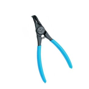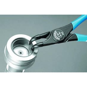 Corpo em aço Gedore-Vanadium e empunhadura plastificada na cor azul padrão Gedore. Acabamento escurecido. Alicate com pontas fixas e curvas 90º. Para anéis de segurança internos conforme norma DIN 472 e DIN 984.
