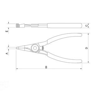 Alicate utilizado em anéis de segurança tipo ferradura. Acelere o seu trabalho com as ferramentas automotivas da Tramontina PRO. Orientações Forjada em aço cromo vanádio. Acabamento fosfatizado. Têmpera total no corpo. Cabos com revestimento especial. Ponta reta. Tamanho: 11" Características Gerais EAN13 7891114148695 DUN14 17891114148692 NCM 8203.20.10 Peso Líquido 0,5500 kg. Peso Bruto 0,5500 kg. Metragem 0,000848 m³. Dimensões Embalagem (Compr. X Larg. X Alt.) 265x 160x 20 mm. Dimensões Produto (Compr. X Larg. X Alt.) 284x 111x 16 mm. Dimensão Extra A 6,3 mm. Dimensão Extra B 284,5 mm. Dimensão Extra C 16,5 mm. Dimensão Extra D 111,0 mm. Dimensão Extra E 10,0 mm. Observações Use óculos, luvas e outros equipamentos de proteção individual (EPIs) de acordo com a tarefa a ser executada. Observe as indicações de uso de cada tipo de alicate. Nunca utilize um alicate para cortar arames endurecidos, a não ser que tenha sido projetado para este fim. Nunca utilize o alicate como martelo. Ele pode trincar ou até mesmo quebrar. Nunca exponha os alicates ao calor excessivo. Isto pode alterar o tratamento térmico aplicado no corte e afetar o seu desempenho. Sempre posicione o corte do alicate perpendicularmente ao eixo do arame para uma operação mais rápida e segura.Utilize alicates isolados, identificados pela marcação 1.000 V no cabo, quando for necessário trabalhar em locais com corrente elétrica. Importante: nestes casos, inspecione a integridade da isolação elétrica, e, se aparecerem trincas na isolação, suspenda o uso imediatamente. Nunca aumente o comprimento dos cabos dos alicates. Isto amplifica a força exercida sobre a cabeça da ferramenta podendo quebrá-la. Nunca utilize o alicate em porcas e parafusos. Para estes trabalhos, indica-se o uso de chaves de aperto. Lubrifique periodicamente a articulação. Isto aumenta a vida útil do produto e melhora sua performance. Manter os alicates longe do alcance de crianças. Armazene em local limpo e seco.