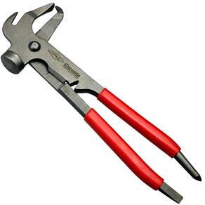 Indispensável no balanceamento de rodas de automóveis para colocar, retirar e cortar pesos calibradores. Forjada em aço cromo-vanádio, recebendo têmpera em fornos de atmosfera controlada Corpo oxidado fosco e cabeça do martelo polida e cabos plastificados em PVC