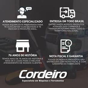 Possui cabo ergonômico, sistema de trava no cabo e limitador da lâmina.