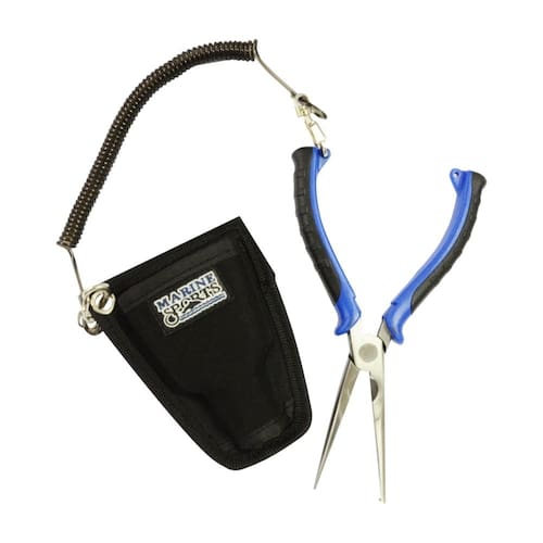 Conheça o Produto: O Alicate Marine Sports com Bainha e Cordão irá tornar sua pescaria muito mais prática. Com a ponta do Alicate você poderá utilizar para abrir argolas, trocar as garateias das suas iscas, manusear anzóis - tanto quando está prendendo a sua linha ou mesmo quando é preciso tirar da boca do peixe fisgado. Além disso, o Alicate possui um fio de corte excelente para cortar multifilamentos e linhas. Produzido em Aço Carbono, o produto contém uma mola que mantem o Alicate aberto para fácil manuseio com as mãos. Possui cabo moldado com inserção de borracha anti-derrapante e protetor de dedos. A grande vantagem deste produto é o cordão ligado a bainha, garantindo comodidade, segurança e praticidade em usar este equipamento sempre que for preciso na sua pescaria. Especificações do produto: Cordão de segurança preso no alicate e bainha, Cabo antiderrapante com boa aderência para um controle seguro, mesmo quando molhado, Local de corte, perfeito para cortar cabo macio ou linhas, Desenho especial do bico para abertura de argolas, Estojo com tecido reforçado para guardar alicate. Marca: Marine Sports Garantia: 3 Meses Contra Defeito de Fabricação Ean: 7898480933993