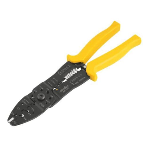 Alicate prensa terminais e corta fios AP055 Vonder Dimensões C x L x A : 9.00 x 30.00 x 2.50 centímetros Peso: 0.35 Kg Cabo plastificado Prensa terminais do tipo: - pré-isolados: fêmea, macho, forquilha garfo , anel e pino; - não isolados: anel e forquilha garfo Especificações Técnicas: Corta fios e cabos de bitolas 0,5 a 5,5 mm² Desencapa fios e cabos de bitolas 0,5 a 5,0 mm² Corta parafuso M2,6 - M3 - M4 e M5 Material do corpo do alicate: Aço carbono Acabamento do alicate: Pintado Comprimento total do alicate: 10 - 254 mm Tipo do cabo do alicate.: Cabo plastificado Garantia - E CDC :Garantia legal: 90 dias Ean: 7893946151249