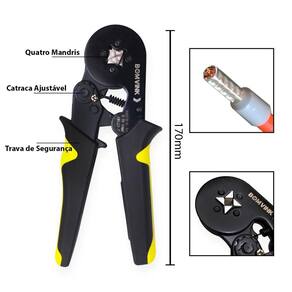 Alicate Prensa Terminal Tubular - Versatilidade e Precisão Maximize a eficiência dos seus projetos elétricos com o Alicate Prensa Terminal Tubular, ideal para crimpar terminais de 0,25 a 10mm. Este alicate é a escolha perfeita para eletricistas, técnicos e entusiastas de DIY que buscam qualidade e praticidade. Características: Ampla Faixa de Uso: Compatível com terminais de 0,25 a 10mm, permitindo versatilidade em diferentes aplicações. Construção Robusta: Feito com materiais duráveis que garantem longa vida útil e resistência. Design Ergonômico: Confortável para uso prolongado, reduzindo a fadiga nas mãos. Facilidade de Uso: Sistema de alavanca que proporciona crimpagem eficiente e precisa. Benefícios: Resultados Profissionais: Obtenha crimpos firmes e seguros, essenciais para a qualidade das conexões elétricas. Ideal para Diversas Aplicações: Perfeito para instalações elétricas, manutenção e reparos. Compacto e Leve: Fácil de transportar e manusear, ideal para trabalho em campo ou em casa. Transforme sua experiência com eletricidade Adquira já o seu Alicate Prensa Terminal Tubular e tenha a ferramenta certa para cada projeto. Marca: Não Informado Ean: 7908782200485