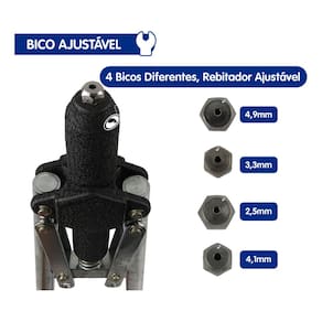 - Compatibilidade: Indicado para unir peças, como: chapas, tubos, perfis, entre outras, através de rebites de repuxo;