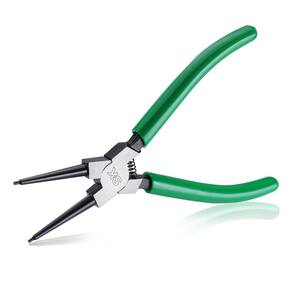 SK Alicate de anel de pressão de 17 cm, alicate de anel interno com mandíbula reta, aço CR-V premium - Feito de aço CR-V premium com um acabamento preto para resistência superior à ferrugem, os alicates de anel de pressão são tratados termicamente para alcançar força e ductilidade, garantindo que possam suportar pressão sem deformação - As pontas são polidas e revestidas com acabamento eletroforético preto, melhorando a dureza e a resistência à corrosão enquanto reduzem o desgaste, prolongando a vida útil do alicate - As alças ergonômicas e antiderrapantes são projetadas para se ajustar à curva da palma da mão para reduzir a fadiga da mão e fornecer aderência segura ao trabalhar. O mecanismo acionado por mola permite uma operação estável com uma mão - Com um diâmetro de ponta de 0,2 cm, o alicate de clipe C tem um design de ponta fina reta com excelente força de fixação, garantindo o alinhamento preciso de anéis de retenção e peças pequenas, tornando-os ideais para trabalho flexível em espaços apertados - Os alicates internos retos são perfeitos para instalar e remover anéis de retenção colocados externamente. Amplamente utilizado em reparos automotivos, fabricação de máquinas e eletrodomésticos