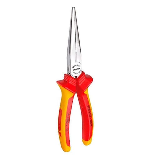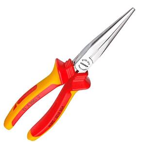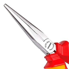 Alicate de bico semirredondo, longo e reto, com dentes finos e em paralelo, que permite cortar, puxar, segurar e dobrar fios. - Indicado para corte de arame com dureza média, diâmetro máximo de 1,6 mm e com resistência à tração 1600 N/mm².