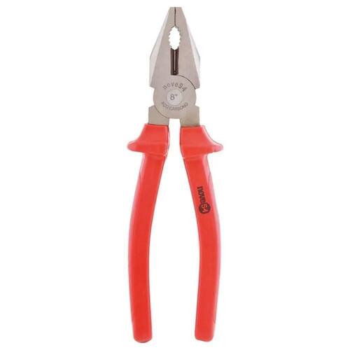 Alicate Universal 8 Nove54-3662121800 Sem Variação único Alicate universal de 8 é a ferramenta indispensável de qualquer caixa de ferramenta. A sua ponta chata e mordida estriada serve para apertar e dobra chapas, fios. No meio há uma abertura circular, também estriada própria para pegar parafusos com firmeza e por fim, existe uma lâmina de corte para cortar arame e fios, finos e médios. Seu cabo possui abas protetoras e é plastificado. - Cabo plastificado - Mais conforto e segurança: cabo ergonômico e com abas protetoras - Fabricado em aço carbono - Polido - Durabilidade do corte superior
