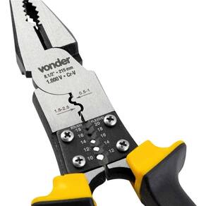Destaques: Confeccionado em aço cromo vanádio, proporcionando maior durabilidade. Possui cabo isolado para tensão de até 1.000 V, função para crimpar e função para desencapar fios de 0,5 mm a 5,0 mm.