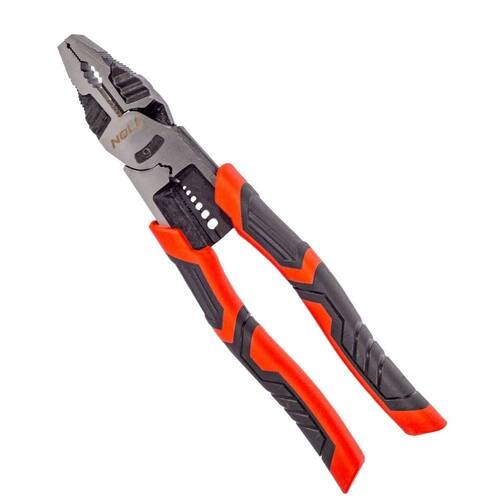 O alicate universal multifuncional é uma ferramenta versátil que combina várias funções em um único instrumento. Ele geralmente possui mandíbulas serrilhadas que proporcionam uma aderência firme em uma variedade de objetos, permitindo que o usuário corte, agarre, dobre e manipule diferentes tipos de materiais, como fios, cabos, arames, entre outros. Além disso, alguns modelos podem incluir recursos adicionais, como abridores de garrafas, cortadores de arame, crimpadores de terminais, entre outros, ampliando ainda mais sua utilidade em várias situações de trabalho. Essa ferramenta é comumente encontrada em caixas de ferramentas de profissionais devido à sua praticidade e versatilidade.