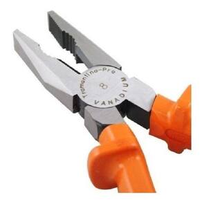 Alicate Universal Profissional 8 Isolado 1.000V Tramontina- Alicate universal isolado 1.000 V Tramontina Pro;- A ferramenta certa para você que trabalha na indústria ou oficinas mecânicas;- Produzida em aço cromo vanádio e empunhaduras de PVC;- Possui articulação polidas;- Puxar, prender, enrolar, deformar e cortar arames e chapas finas;- Segue a seguintes normas: NBR9699 e NR10.Especificação Técnica:- Material: Aço vanádio;- Material da Empunhadura: PVC;- Norma: NBR9699 e NR10;- Comprimento: 215mm;- Largura: 55mm- Peso: 0,40kg;- Modelo: 44000/108;- Marca: TRAMONTINA PRO.EspecificaçõesMedida: 8'' Tipo: Universal