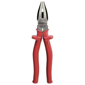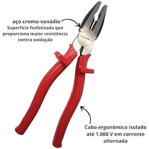 O Alicate Universal Gedore Red é uma ferramenta fabricada em aço cromo-vanádio, com bicos lixados que garantem cortes precisos e um acabamento fosfatizado para maior resistência à oxidação. Com aplicação especial de óleo, o alicate oferece proteção adicional contra a corrosão, enquanto seus cabos com proteção extra evitam o contato direto com o metal, maximizando o conforto e a segurança. O cabo ergonômico é isolado até 1.000 V em corrente alternada e testado conforme a norma NBR 9699, ideal para cortar fios, cabos e arames de diversos materiais, como cobre, alumínio, latão, bronze, plástico e aço de até 2,0 mm de diâmetro.