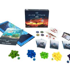 Alien Attack USA é primeiro jogo nacional, com autoria do renomado designer Reiner Knizia, desenvolvido pelo Glyptodon Studio e distribuído pela MeepleBR.