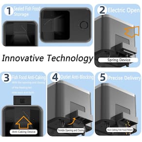 alimentador de peixes para aquário com dispensador automático de pelotas Bluetooth bateria de lítio inteligente - Alimentador automático de peixe com Bluetooth da GEZIEKID permite que você programe livremente no aplicativo. Você só precisa baixar e instalar o aplicativo "VSON" para usá-lo. Não é necessário registrar uma conta no aplicativo. Não é necessário conectar ao Wi-Fi. Conecta apenas via Bluetooth, não é necessário obter mais permissões de privacidade do seu telefone, muito fácil de usar e seguro. Suporta sistema Android 6.0 ou superior e iOS 9.0 ou superior. - ?Tempo de alimentação de fácil configuração? O alimentador automático de peixe tem dois modos programados no aplicativo. ? Modo de temporização: alimentação de acordo com o tempo específico definido, como definir um alarme no seu telefone. ? Modo de intervalo: defina o primeiro tempo de alimentação e, em seguida, defina um período de intervalo, o alimentador de peixe alternará a alimentação de acordo com o intervalo definido. Você também pode alimentar manualmente através do botão no alimentador de peixe. - ?Bateria de lítio recarregável embutida? Dois modos de alimentação: USB 5V/1A e bateria de lítio recarregável integrada. Você pode usá-lo de forma independente com bateria, bateria de lítio de 1000 mAh, que pode ser usada sem preocupações por 3 a 6 meses após ser totalmente carregada. Você também pode usar a fonte de alimentação USB e a bateria será usada como fonte de alimentação de reserva. Quando a energia USB é cortada, a bateria funcionará imediatamente para garantir que o alimentador de peixe não perca energia. o pacote inclui um carregador e um cabo de alimentação. O comprimento do cabo de alimentação é de cerca de 1,5 m. - ?Fácil de instalar? Com grampos ajustáveis, você pode facilmente apertar os parafusos para fixar o alimentador no aquário, fácil de montar e desmontar. Para aquários fechados, existem 4 pontos de apoio salientes na parte inferior do alimentador de peixes, que podem ser colocados diretamente e de forma estável na abertura do aquário fechado para alimentação. - ?Design inovador? O design de alimentação push-pull, eliminando o problema de comida úmida de peixe. Alimentação precisa. O alimentador inteligente de peixe tem quatro compartimentos de alimentação de tamanhos diferentes, que podem ser substituídos de acordo com o tamanho da comida de peixe. O alimentador de peixe pode adicionar uma caixa de armazenamento de comida de peixe destacável na parte superior da máquina, e a capacidade total pode chegar a 430 ml após a instalação (não está incluído no pacote e precisa ser adquirido separadamente. Estará disponível em lojas subsequentes.) - ?Ver histórico de alimentação? No aplicativo, você pode ver os registros de alimentação do alimentador de peixes do ano passado. Falta de registros de ração para peixes. Registros de troca de água/limpeza de aquário. Específico para o ano, mês, dia, hora de alimentação. Se você tiver alguma dúvida durante o uso do produto, sinta-se à vontade para entrar em contato conosco.