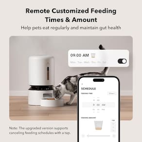 PETLIBRO Alimentador automático para gatos, alimentador automático 5G WiFi para cães com preservação do frescor, alimentador temporizado para gatos de 5 L com sensor de baixa alimentação, até 10 - Controle inteligente de aplicativos: o alimentador Wi-Fi totalmente automático para cães é de 5 GHz e 2,4 GHz, permitindo que você programe as refeições do seu animal de estimação em qualquer lugar a qualquer momento através do aplicativo PETLIBRO em seu smartphone iOS ou Android. - Nunca perca uma refeição: Agende facilmente até 10 refeições por dia com 1-48 porções por refeição (1/12 xícara cada porção), você pode facilmente personalizar o plano de alimentação do seu amigo peludo e verificar os registros de alimentação para garantir que seu gato tenha sido alimentado em um cronograma definido pelo aplicativo. - Chamada de refeição personalizada: grave uma mensagem de voz por até 10 segundos que toca para cada mamada e defina livremente os horários da chamada de refeição para que seu animal de estimação possa sentir seu cuidado mesmo quando você não estiver em casa. Além disso, o dispositivo inteligente oferece a você a capacidade de gravar até 10 chamadas de refeição personalizadas e ajustar o volume às suas necessidades! - Frescura em cada mordida: o rotor patenteado na base do tanque e a tampa de bloqueio de torção evitam que os animais de estimação entrem no dispensador de alimentos para obter comida extra. O saco dessecante integrado e a tira de vedação mantêm os alimentos frescos e crocantes. A tigela de aço inoxidável de grau alimentício oferece alimentação saudável e higiênica, evitando que seus animais de estimação sofram acne no queixo. - Notificações e indicadores inteligentes: seu telefone recebe notificações e os indicadores da máquina também acendem em vermelho quando o tanque de comida está vazio, a comida fica atolada, a bateria está fraca ou tem outros problemas. O sensor infravermelho mantém a verificação e interrompe a distribuição de alimentos se a saída de alimentos estiver bloqueada.