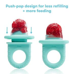 Alimentador Frida Baby Push Pop, alimentador de frutas para bebês, alimentador de frutas para bebês para introduzir novos alimentos com segurança, comedouro de silicone para alimentos frescos e congelados para bebês, sem BPA, lavável na máquina de lavar louça | 3 unidades, azul-petróleo
