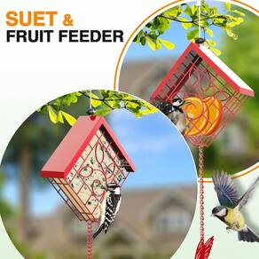 - Opções de alimentação versáteis: Encha os alimentadores de pássaros de sebo ao ar livre com bolos de sementes, pequenos bolos de sementes, materiais de nidificação ou até mesmo laranjas para atrair uma variedade diversificada de pássaros ao longo do ano. É perfeito para alimentar pica-paus, nuthatches, chapins e muito mais, adaptando-se às preferências de alimentação sazonais.