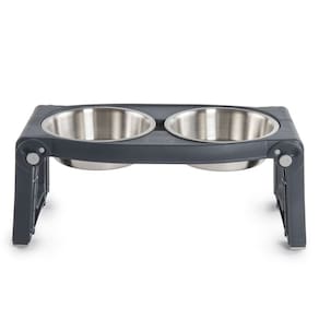 — Ideal para uso diário ou para viagens: toda a unidade se dobra e se dobra até 2,75 polegadas de altura para facilitar o armazenamento. Para dobrar, remova as tigelas, a parte inferior das pernas e, em seguida, aperte o botão de liberação para dobrar as pernas para dentro.