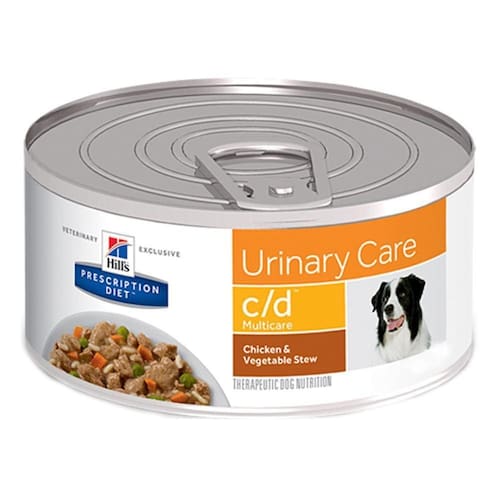 Alimento Úmido Hills C/D Urinary Care Lata para Cães 156g Alimento Úmido Hills C/D Urinary Care Lata para Cães: Alimento coadjuvante úmido para cães adultos, formulado para promover a saúde do trato urinário. Urolitíase de estruvita (auxilia no tratamento da doença e no controle de recidivas). - Auxílio à dissolução de urólitos de estruvita; - Auxílio à redução do risco de formação de urólitos de estruvita e de oxalato de cálcio; - Recomendado para alimentação contínua de cães adultos; - Todos os alimentos Hill's possuem 100% de satisfação garantida, ou o fabricante devolve seu dinheiro.
