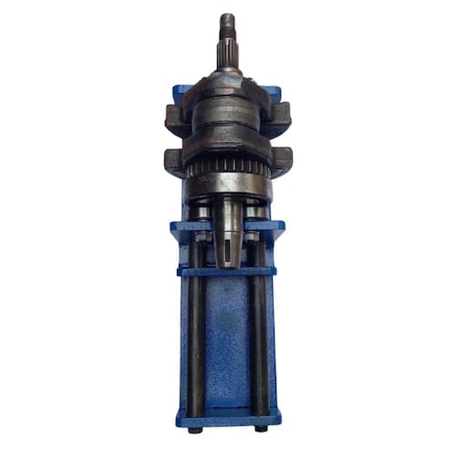 Ferramenta para aferição do alinhamento do virabrequim de motos. Com 4 rolamentos de apoio e 2 guias lineares para um ajuste fino. Construido em Aço Sae 1045 com pintura eletrostatica azul colonial. Abertura maxima e espaço entre os rolamentos é de 220mm com altura de apoio de 110mm. Altura total do produto 160mm /comprimento de 345mm/largura 104mm , eixos guias de 19mm.