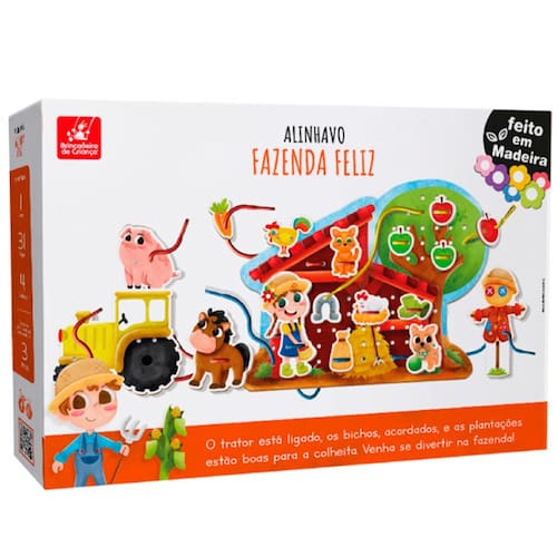 Contém:1 Cenário, 32 peças em madeira e 4 cadarços coloridos.
