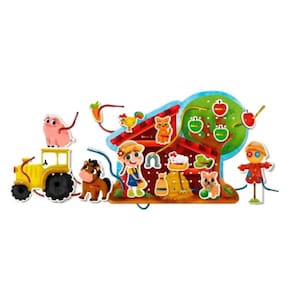 Com 32 peças, as crianças se tornam fazendeiros e podem imaginar diversas histórias na fazenda usando seus animais, trator e plantações.