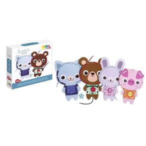 Os Alinhavos dos Bichinhos trabalham diversas habilidades como coordenação bilateral, movimento de pinça, coordenação motora fina de maneira lúdica e criativa. Recomenda-se a interação de um adulto. É um brinquedo seguro, durável e ecológico. Indicado para crianças a partir de 4 anos. Contém: 4 bichinhos para alinhavar, 8 acessórios roupinhas e botões , 8 cadarços coloridos. Tamanhos: urso e gato 24 x 15 cm, porco 22 x 15, coelho 27 x 15 cm Composição: madeira, papel Inmentro: CE-BRI/SARON-N 0135-19 NM 300/2002 OCP 0127 Referência 6050 Ean: 7898102626500