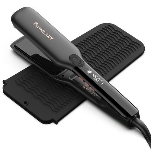 Annlary Alisador de cabelo plano de 4 cm com bolsa de silicone resistente, ferro plano iônico de cerâmica profissional com silicone antiferro para cabelos menos frizz, mais brilhantes e macios