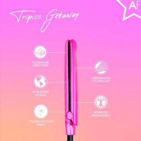 O Straightner de viagem Tropico Getaway Tourmalin-Ceramic Premium é conhecido por seu desempenho superior e confiabilidade primordial. Prepare-se com a mini chapinha Tropico Getaway - com uma bolsa de viagem de designer exclusiva para transporte conveniente e estilo em qualquer lugar! Pronto para lidar com qualquer aventura, este mini conjunto de viagem da Almost Famous é a criação dominada de moda, portabilidade compacta e desempenho insuperável.
