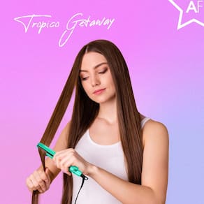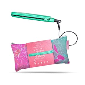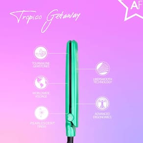Almost Famous Mini turmalina e alisador de cabelo de cerâmica Tropico Getaway 1,3 cm com bolsa de viagem deslumbrante com temperatura definida, todos os penteados (mellow)