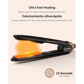 ?Aquecimento rápido de 15 segundos e tecnologia inteligente de controle de temperatura?Terviiix Golden Standard Styler equo com o melhor aquecedor PTC da categoria, que pode reduzir o tempo de aquecimento para 15s. O chip de controle de temperatura de alta precisão torna a faixa de flutuação de temperatura menor do que a da chapinha de cabelo comum. A temperatura estável reduz o risco de danos no cabelo